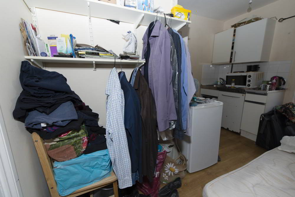 For now, he wanted to show me his flat. It’s the tiny, single room in Kilburn you see here – so small that it was difficult for the four of us who were there to fit into all at once. His rent is paid in housing benefit – which means that his landlord gets housing benefit for renting this tiny little room out as a flat.