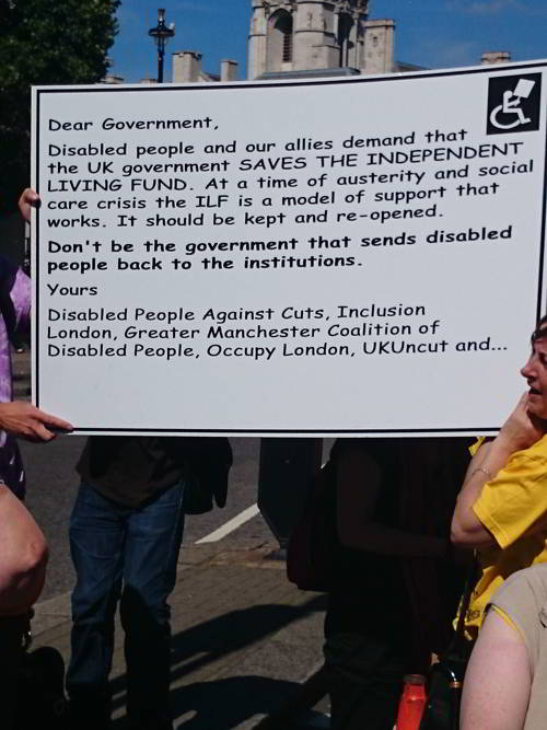Video and pics: disabled protestors block Victoria Street #SaveILF