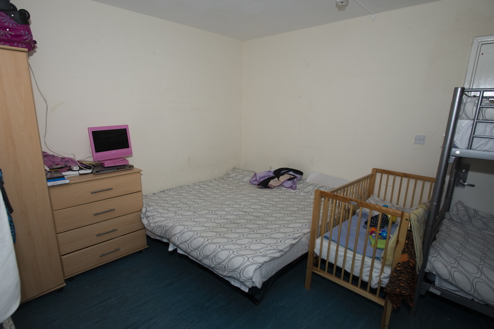 A couple of weeks ago, I went to see a woman who we’ll call Becky. She was in her early thirties. She and her six children (aged seven and under) were living in a one-bedroom flat in a temporary accommodation hostel in South East London. The whole family (the family included an 18-month-old baby) slept in that one bedroom. You can see the beds and bunks in the photos below. The kitchen was tiny. There was just enough space for two adults to fit into it if neither of them moved around very much. Cockroaches rattled across the floor. Becky had plugged holes in the walls with foam to stop the cockroaches from getting into the flat and into the baby’s cot: