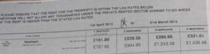 As we speak, I’m writing a story with a young Newham woman called Chantelle Dean who is trying to find a place. She showed me this piece of paper for local LHA rates. The text at the top of the paper says (bit hard to see on the image):